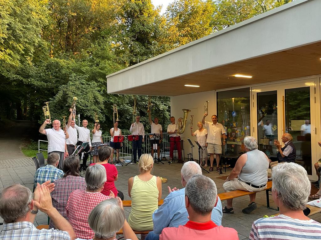 Am kommenden Samstag, den 22. Juli um 19 Uhr, gestaltet das Bläserensemble Bad Aibling unter der Leitung von Kirchenmusikdirektor Andreas Hellfritsch eine Bläserserenade am Evang. Gemeindehaus, Martin-Luther-Hain 2. Auf dem Programm stehen festliche und sommerliche Werke von Friedrich Silcher, Dieter Wendel, Richard Roblee, Jürgen Hahn, Walter Hamm, u.a. Als Besonderheit werden inmitten des Sommerkonzertes „Fränkische Bratwürste“ gegrillt und Getränke angeboten. Herzliche Einladung zu einem musikalischen, genüsslichen und gemütlichen Sommerabend!