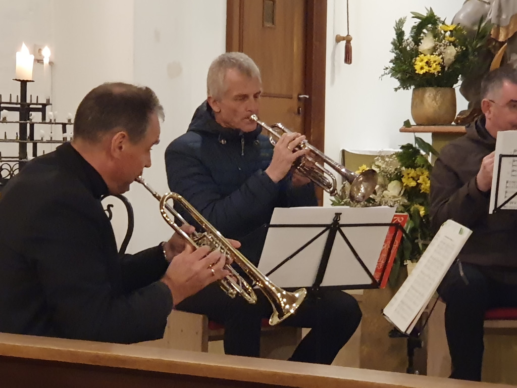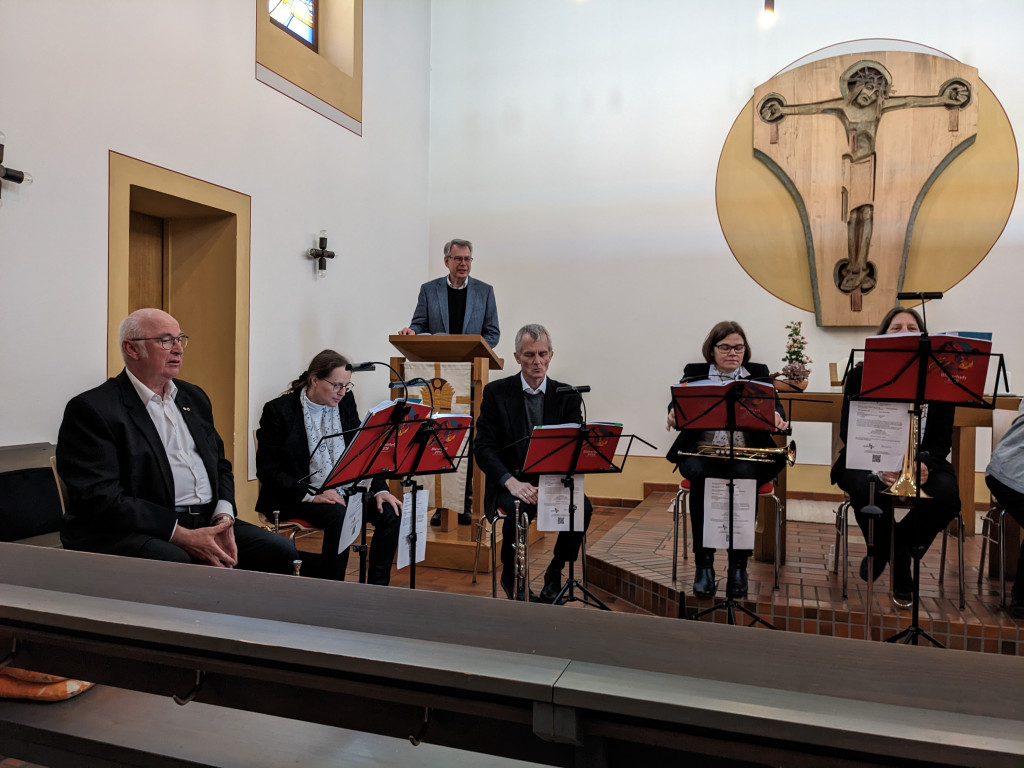Das Bläserensemble und Pfr. Dr. Bernd Rother vom Evangelischen Bildungswserk Rosenheim gestalteten am 8. März einen musikalischen Abend mit Texten zu dem Jahresthema: "Mit Gott auf dem Weg sein"